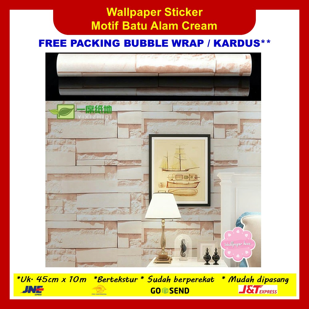 Wallpaper Sticker Dinding 45cm X 10m Batu Alam Cream Walpaper Stiker